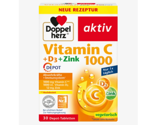 標籤: Doppelherz 維生素 C 1000 + D3 + 鋅 Depot 片劑 30 片,42.9 克, Doppelherz Vitamin C 1000 + D3 + Zink Depot Tabletten 30 St, 42, 9 g, 必備維生素礦物質